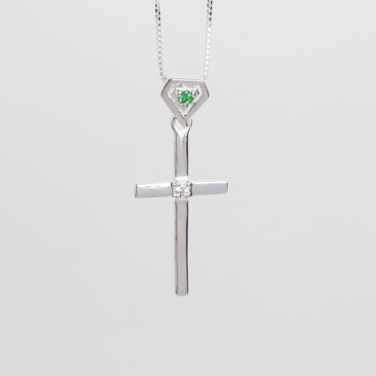 Sterling Silver Classic Cross Necklace With LUCIGO Emerald Bail